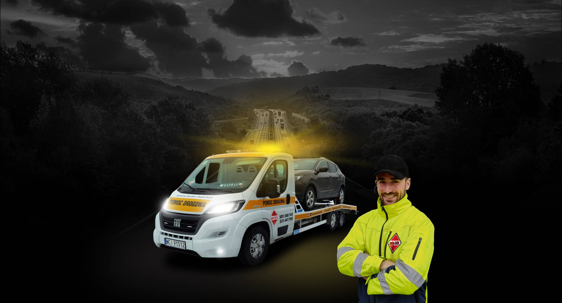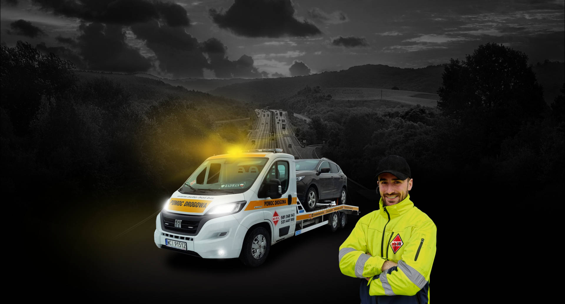 obsługujemy samochody ciężarowe • dostawcze • osobowe • pomagamy na trasie • holujemy • transportujemy